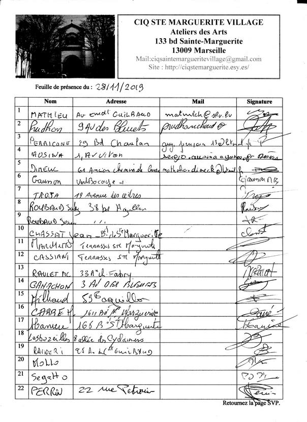 Compte Rendu de la Réunion du 28 novembre 2019 à 18h